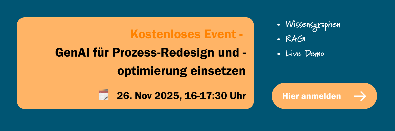 26. November eine Online-Veranstaltung an, bei der wir anhand des Showcases diskutieren werden, wie GenAI für die Neugestaltung und Optimierung von Prozessen eingesetzt werden kann.